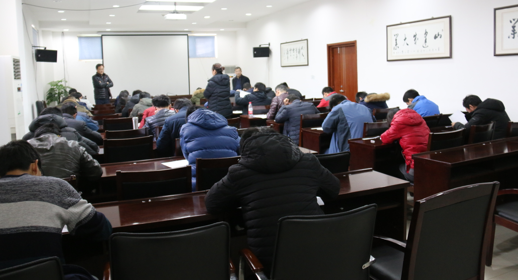 考試提前15分鐘進場,并將隨身攜帶的手機及復印資料統一放置于會場外的箱子內,以便防止作弊,充分體現了考試的公平公正原則。此次考試,公司鞠總經理親自監考,對本次考試高度重視,監考老師們認真嚴肅,態度堅決。考試人員絲毫不敢怠慢,認真作答,沒有出現作弊現象。