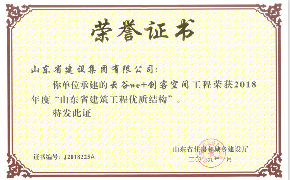 云谷we+創客空間工程獲2018年度山東省建筑工程優質結構