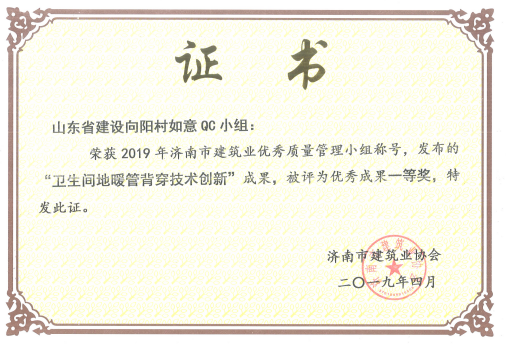 向陽村如意QC小組“衛生間地暖管背穿技術創新”被評為優秀成果一等獎