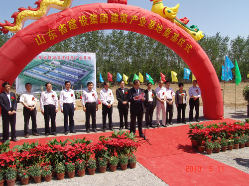 集團公司黨委書記、董事長王傳波同志在奠基儀式上作了熱情洋溢的講話。他說,為了拓展發展空間,早在2008年7月,我們威海建設集團成功購并原山東省建筑工程總公司,組建成立了山東省建設集團有限公司。經過一年多的發展,山東省建設集團的管理機制不斷理順,市場開拓力度不斷加大,公司在濟南市場的發展格局已經全面拉開。為了進一步加大對山東省建設集團的扶持力度,實現在濟南及周邊建筑市場的長遠發展,我們在章丘市明水經濟開發區購置土地132畝,打造山東省建設集團章丘建筑產業化基地項目。